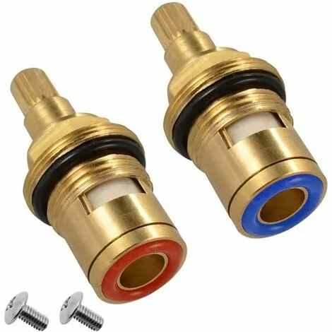 Set: 2 Faucet cartridges (blue and red), with 2 screws (4 mm). Can be used for single or double faucets. Ideal for bathrooms, kitchens.
