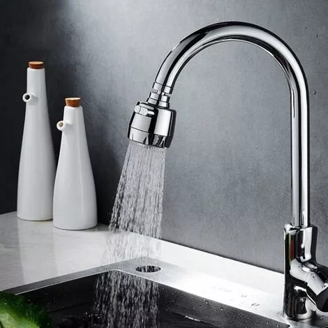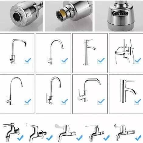 [Material]: Made of stainless steel and plastic material, which is not easy to rust and eco-friendly for the family [Feature]: 360 degree rotating faucet allows the mixer to clean full sink intestine without a dead end. Especially suitable for washing dishes by hand, also avoid high-pressure water splash [Two water outlet modes]: With a dual-function spray head, you can adjust the water between the aerated stream and the powerful sprayer, you can save 30% more water. Ideal for saving energy and reducing water bills [Easy Clean]: Just remove the filter and rinse it with water [Easy to clean install]: No tools required, make sure your faucet fits the product dimensions