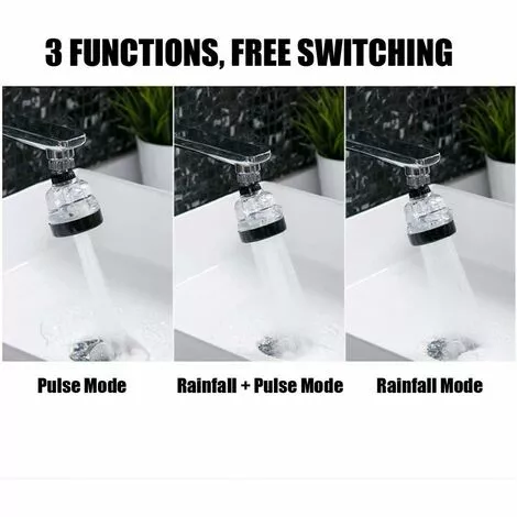 3 MODE ADJUSTABLE: The tap aerator design with 3 spray mode, just press the button and you can freely switch pulse mode, rainfall + pulse mode and rainfull mode.