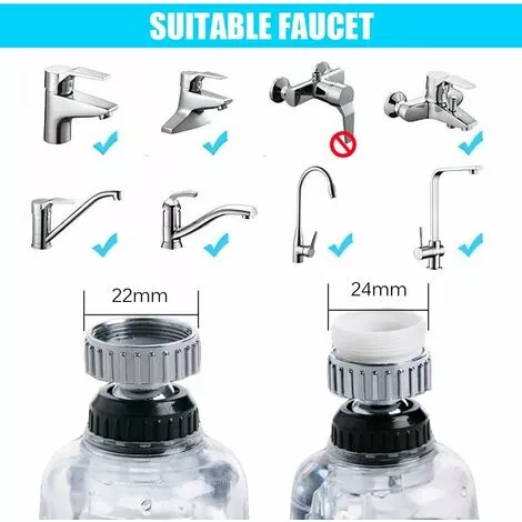 WATER SAVING: Water saving 30%~70% (compared with standard bubbler) Suitable for 22mm-24mm caliber round mouth water faucet at kitchen or bathroom, easy to install without tools.