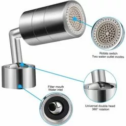 ă720° RotationăIt is more convenient to wash your face and gargle! You can adjust the faucet head to any angle to clean your plates, fruits and vegetables more easily.