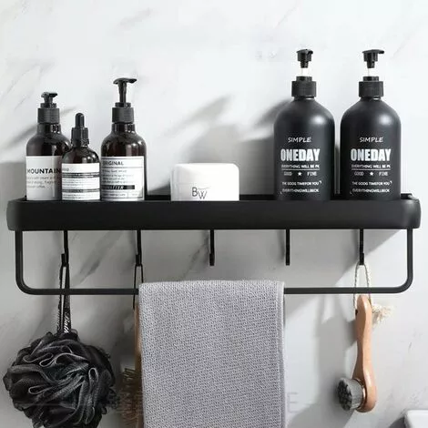 【Large capacity】Double bathroom storage shelf size 30 x 13 cm, with 1 towel rack and 5 hooks. Enough to store your various toiletries.