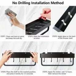 【Wide Range of Use】Matte black shower caddy, elegant and beautiful. Suitable for bathroom, kitchen, living room, bedroom, balcony. Note: Not suitable for painting walls, plaster walls, cement walls, wallpaper walls.
