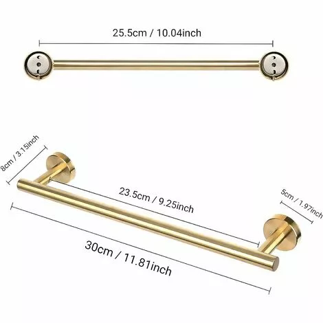 【DIMENSIONS】: Total length: 30cm, distance from the towel rail to the wall: 72 mm. This bath towel rack can be used in the kitchen, bathroom or other places. You can attach it to your closet, cabinet door or wall