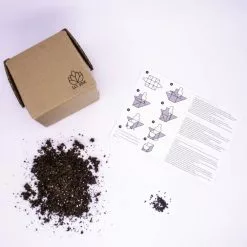 Fold the waterproof cultivation box, fill it with the soil and plant the seeds. The packet comes with several seeds that you can plant into numerous trees! The trees are relatively low maintenance but sensitive to over watering at the start. A spray bottle is a great way of keeping the soil moist at the trees’ most sensitive stages. If you get more than one tree growing in the cultivation box you can easily relocate one to another pot once it starts growing more than two leaves. Of course you can choose to leave them both in the box but it will be harder to relocate them once the roots start getting tangled.