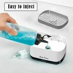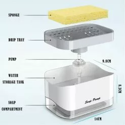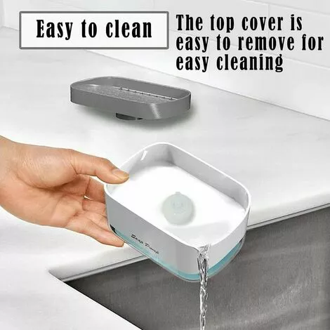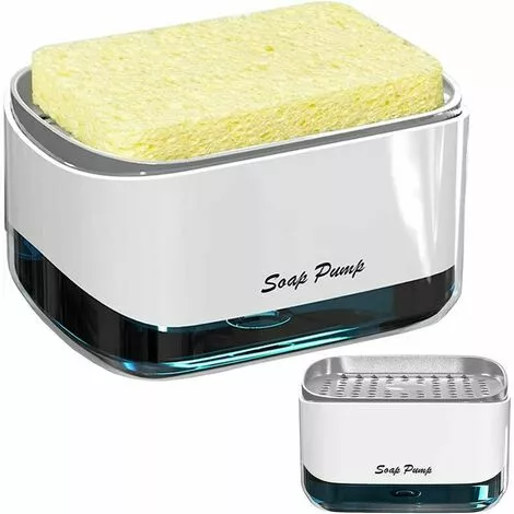 “[Innovative Design] Only the top drain is detachable, so you don’t have to worry about water leaks or loose lids caused by frequent opening. The hollow drain helps to dry the sponge and tank quickly and prevents waste water from flowing back into the detergent tank. 【Extrusion Liquid Design】Adequate amount of detergent can be extruded without waste by one-handed extrusion. Even children can handle it easily, reducing the amount of soap and harmful emissions. [Capacity] The soap dispenser sponge holder has a capacity of 13 ounces, so you don’t have to refill it frequently. The sponge is suitable for a variety of liquid soaps and can be easily replaced with other cleaning sponges after use. [Two in One Design] includes a set of soap dispenser and sponge. The soap dispenser can not only store soap, but also place a sponge holder to reduce mess in the sink. [Material] Made of high quality ABS + PC plastic, corrosion and rust resistant. Very durable and long lasting. “”