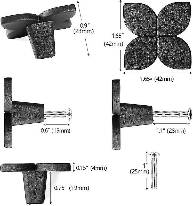 Package content: 2 brushed zinc alloy cabinet knobs with size 42 x 42 x 23 mm and original screws.