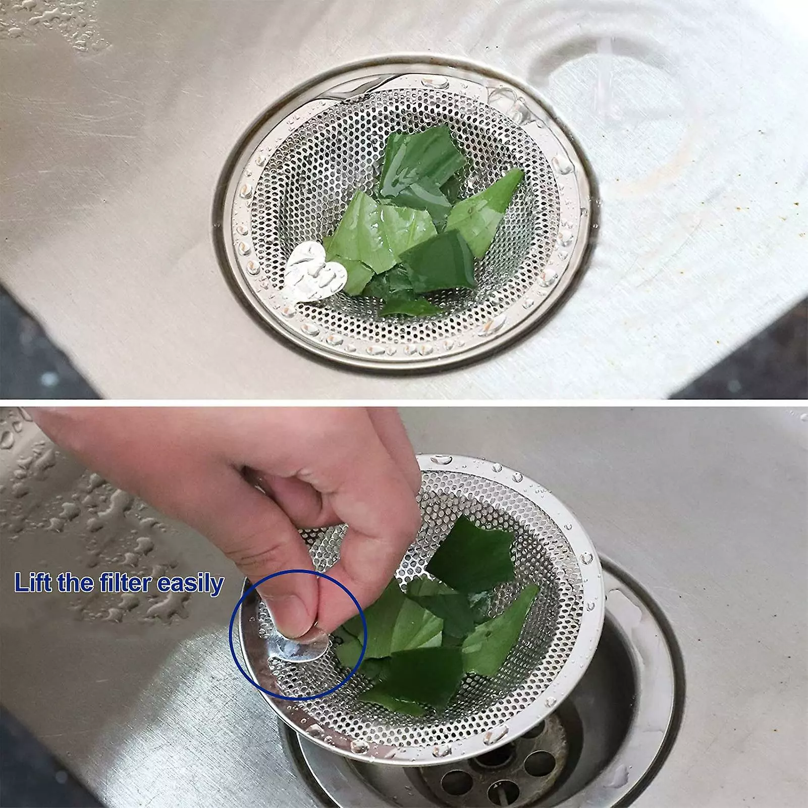 Smart Design: The handle of our sink strainer makes it easier to unload leftovers, you no longer have to worry about the strainer getting stuck in the sink. No sharp edges on the drain strainer, so it won’t_x000D_will not hurt your hands.
