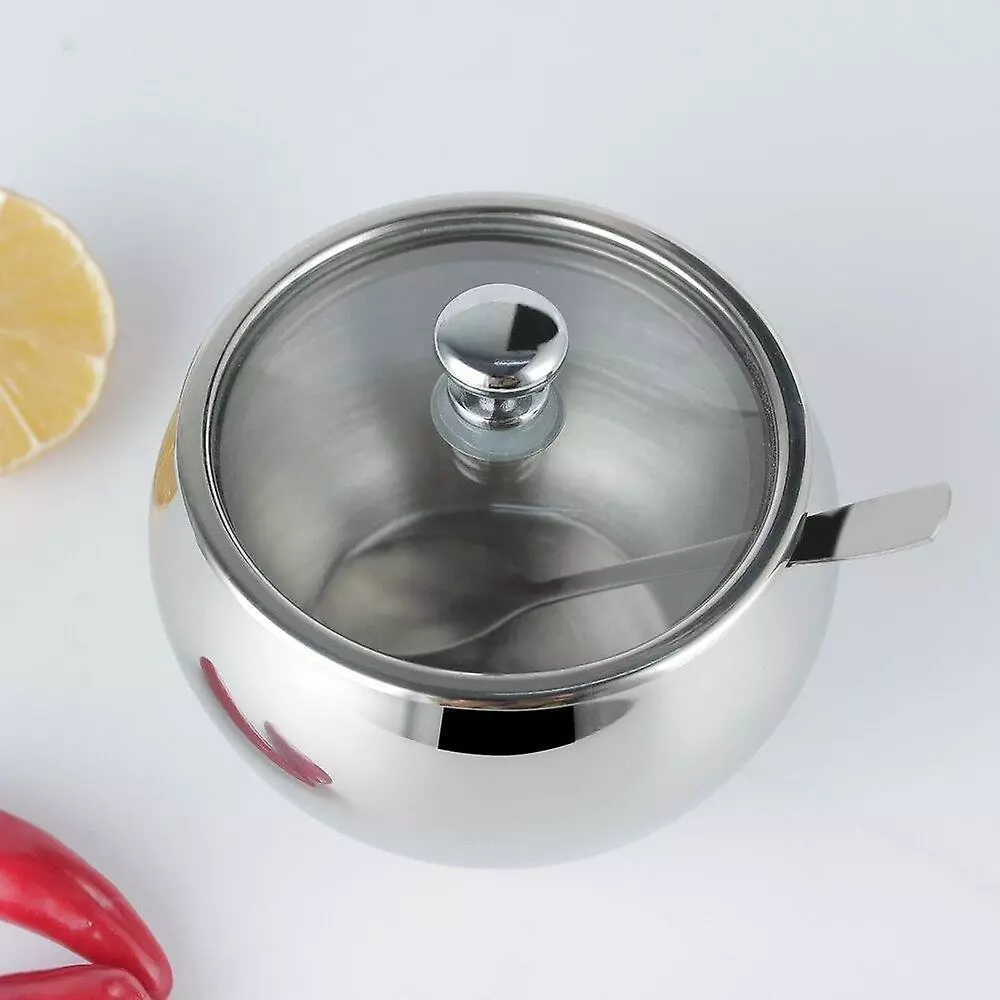 With Spoon Design: This item comes with a stainless steel spoon. And the opening position on the edge is for placing the spoon so it will never get lost.