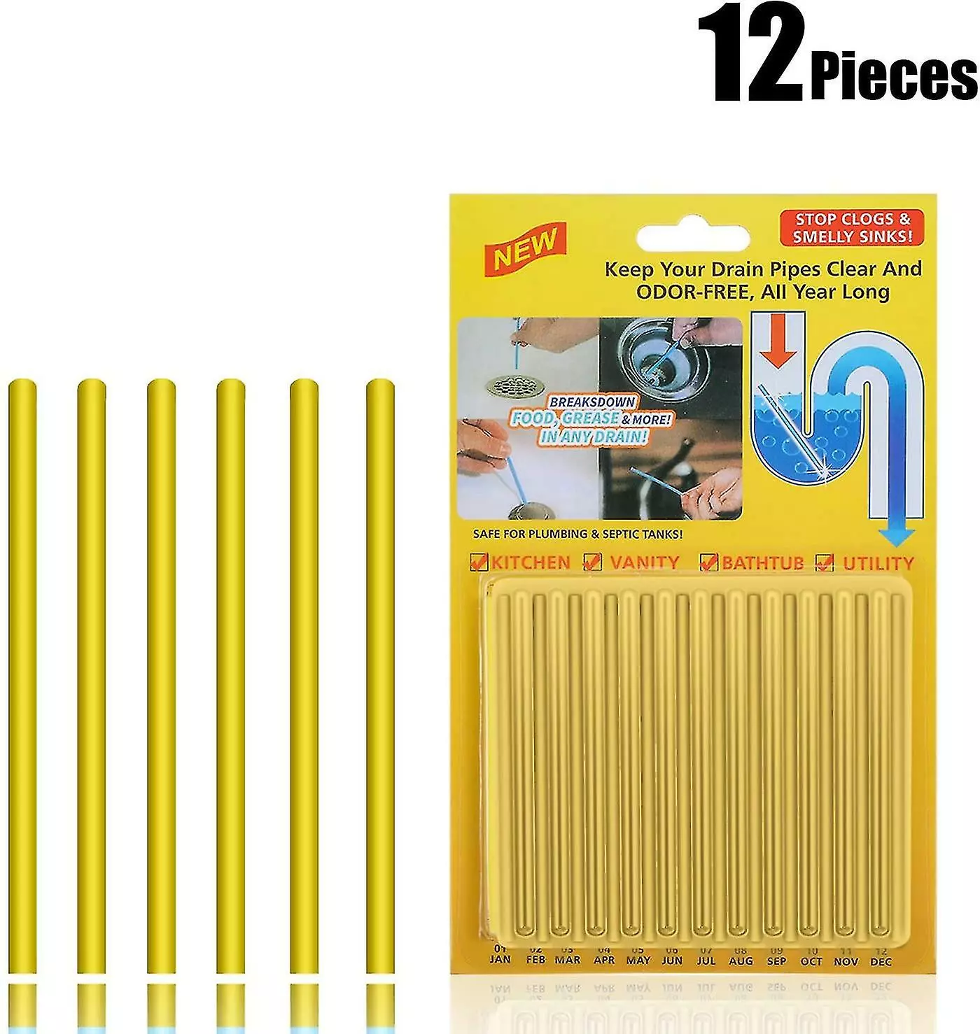 The cleaning stick breaks down and digests organic sediment and grease buildup, making it safe for pipes and septic tanks. The drain strip is not stained or stained, it is a household health care product, don’t worry.