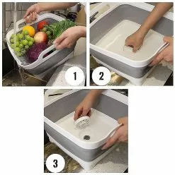 ?Foldable Design?: Collapsible kitchen sink bowl and user-friendly design, easy to open and fold. Very space-saving and portable. This rinsing tank is very suitable for cooking, camping, excursions, picnics. .