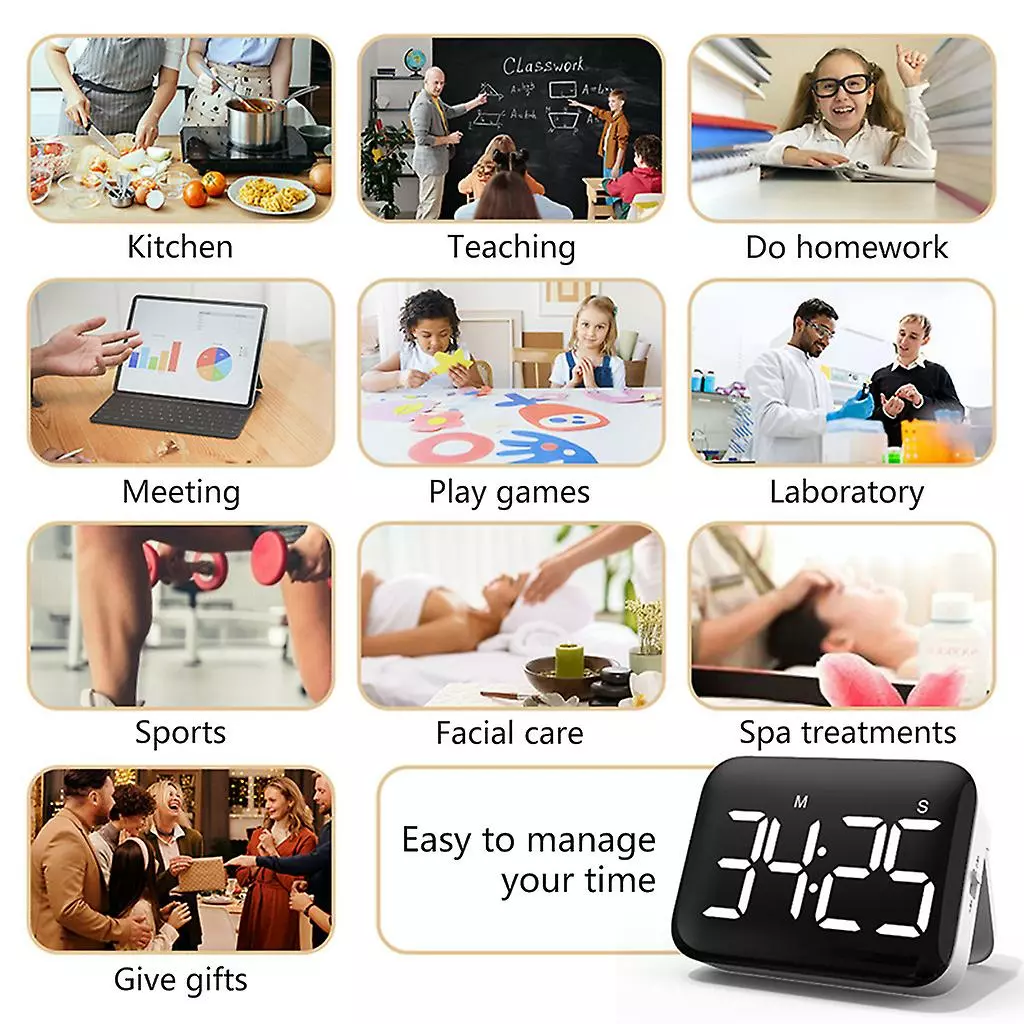2 levels of brightness to meet your different needs in both daylight and nighttime, easy to read even in dark. In pause/stop mode, the timer display would automatically turn off if there is no operation within 5 seconds, saving your worries that you may forget to turn it off. Just press any button on the top to activate it again as you need.