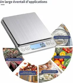 Easy to carry: Small in size, the product measures only 4in x 5in x 0.75in, making it easy to carry. carry and space-saving to store when in use. The electronic scale can be used to weigh food, vegetables, fruits, baking ingredients, daily household items and pet food. The digital kitchen scale has two trays that can be changed to fit different objects.