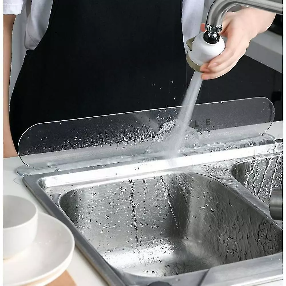 Tired of water splashing on your clothes? We are. This kitchen sink water splash guard helps keep water from doing just that. Place in front of your sink to reduce splashes on clothes or behind the island faucet as a backsplash. It also works great in the bathroom.