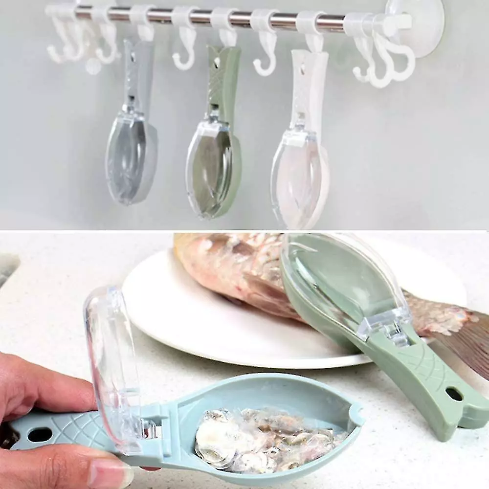 With Clear Cover Design- With the cover design, prevent scales flying, easy for storage. When the fish scales are scraped, the scales are not flying, and the operation is convenient.