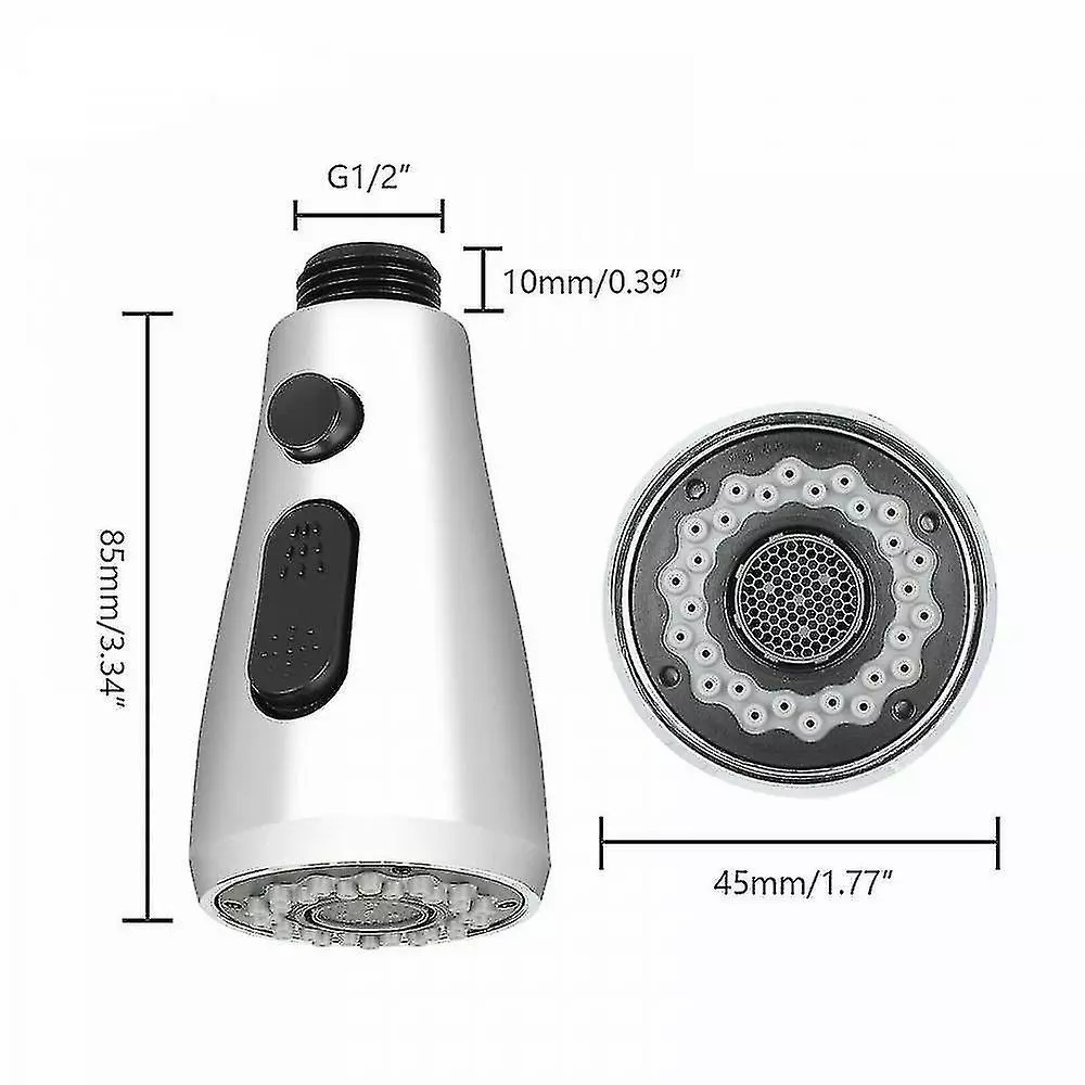 Product FeatureONLY FOR G1/2 MALE CONNECTION: This pull-down spray head is ONLY for G1/2 Connector (About 2 cm or 0.8 inch), Not NPT, Not universal, not suitable for 1/2″ Male hose.EASILY SWITCH BETWEEN 3 MODES: EASY TO MANIPULATE WITH THREE SETTINGS: this kitchen sink sprayer head has three functions, stream, spray and pause. Simply press and release the button to switch from regular stream to spray. Keep pressing the round button at the top and it will pause the water flow.HIGH QUALITY: Engineering grade plastic (PC/ABS) constructed and industry leading chrome finish, ensuring quality and longevity, resist scratches. Elegant ergonomic design.EASY TO INSTALL: The pull-out spray head is made of silicone nozzles, easy to clean, simply unscrew your old shower head and replace it with your new one to transform your kitchen.WATER SAVING: The flow rate of this spray head replacement is water saving and high pressure.