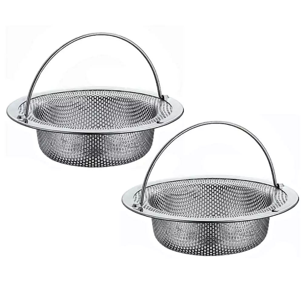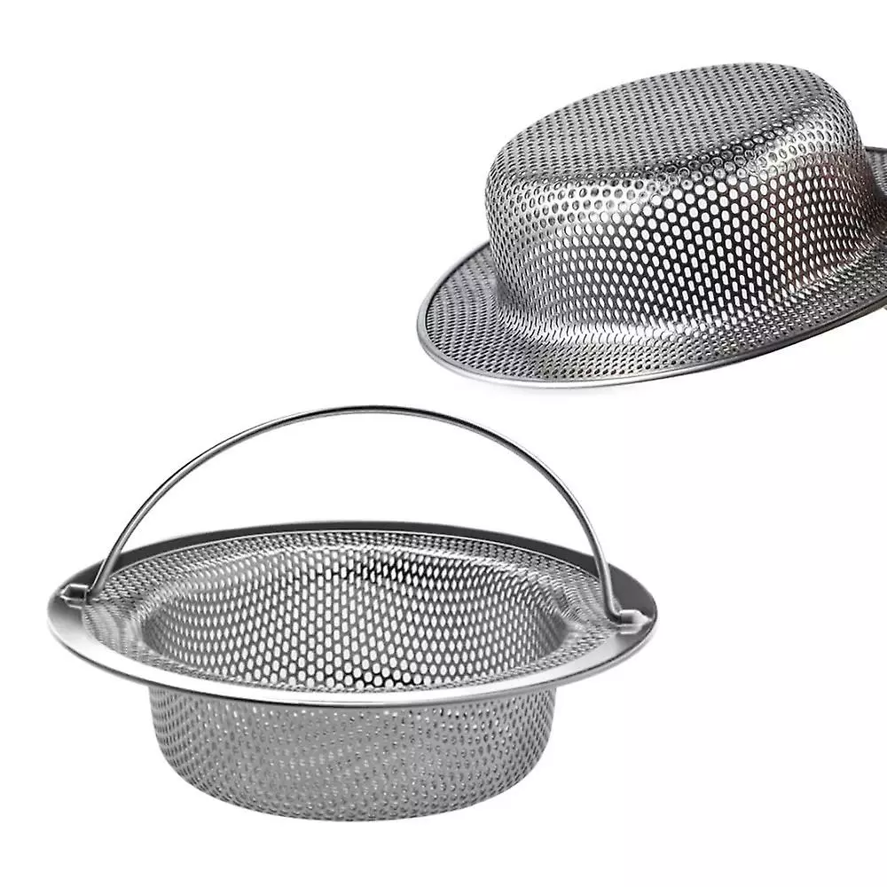 Material: The sink strainer is made of 304 stainless steel, which is rust-resistant and durable. The filter has a handle for easy pulling out and the fine mesh can filter completely.