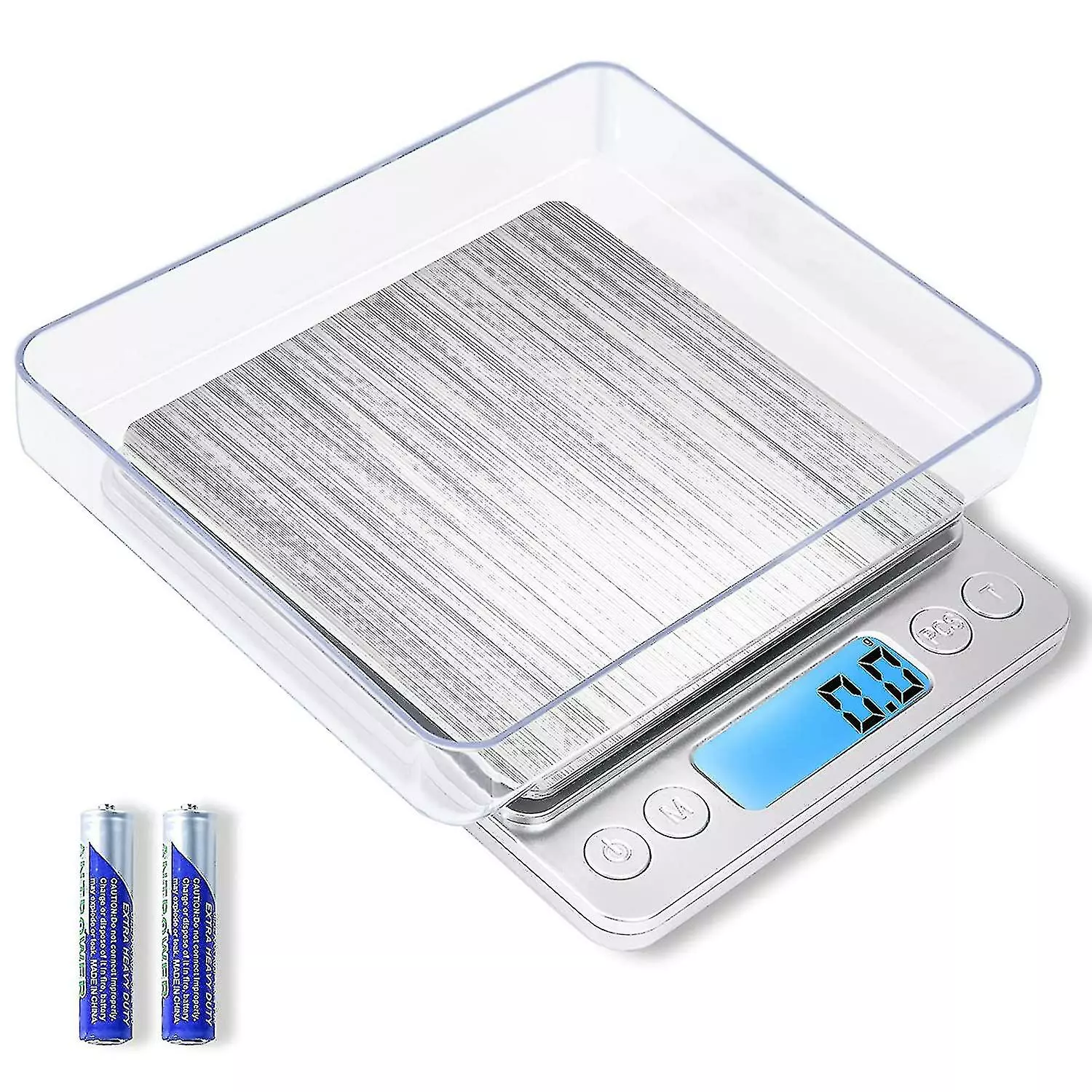 Multi-unitThe small gram scale has 9 units for you to use, g,oz,lb,tl,ozt,dwt,gn,ml,ct. Mini Size: 4″ x 5″ x 3/4″ with auto-calibration, comes with two trays to protect scales and containers (two (AAA) batteries not included), auto-off feature saves battery power and give you longer battery life.