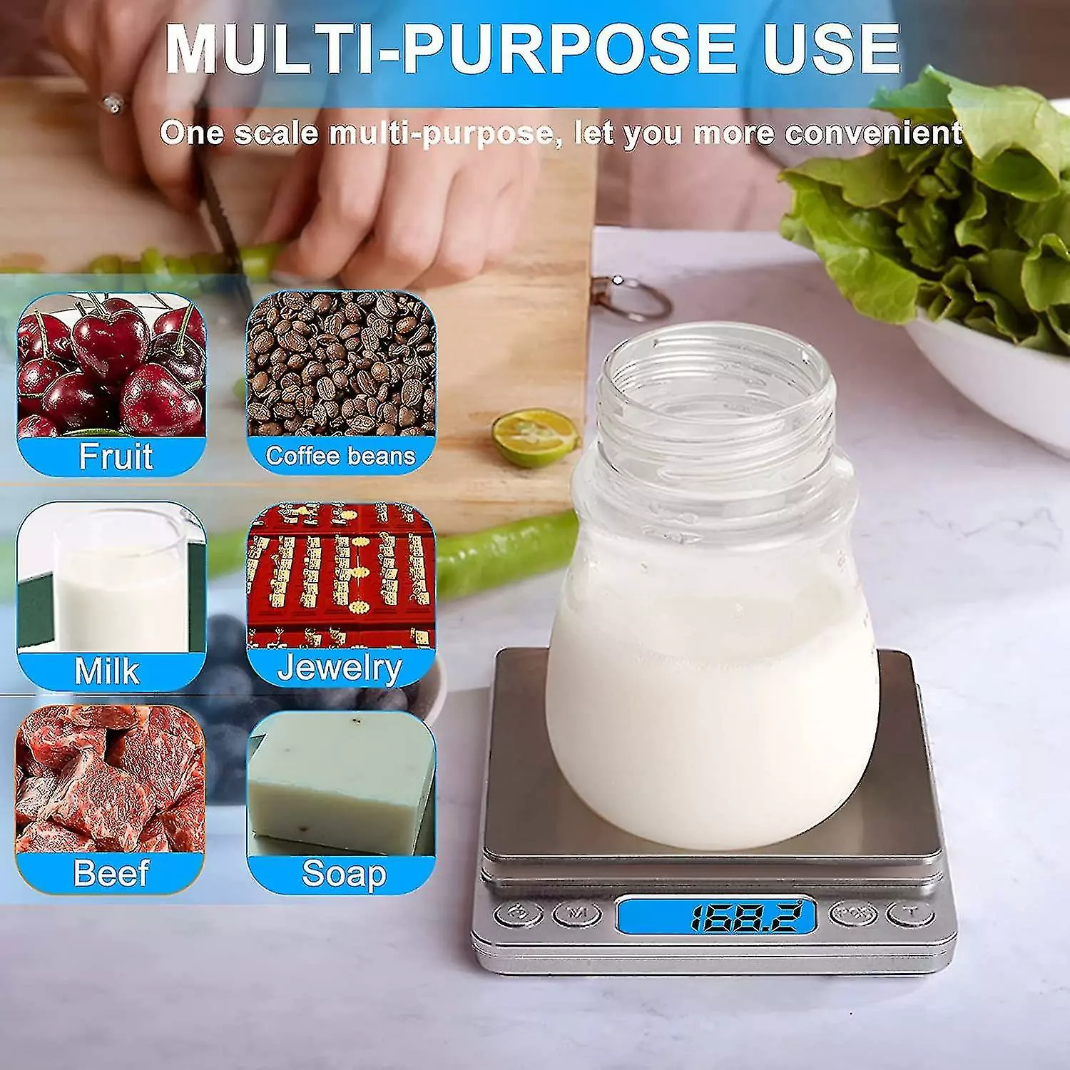 Easy to clean and storeThe surface of the gram scale is made of stainless steel. It has a high quality texture. You just need to wipe gently with a towel. It”s easy to clean. Small and compact appearance is easy to carry and store for your travels.