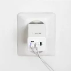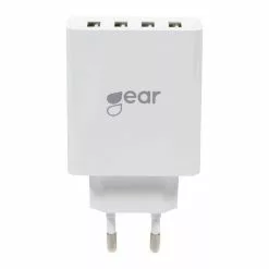 Flexible wall charger that can charge four different USB devices simultaneously. The USB charger has 4 USB-A ports that automatically detect and optimize charging according to the cord and the device.