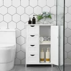 With 4 deep drawers and a cabinet behind the door, you get a lot of storage space, so the towels, toiletries, and cleaners can all be well-organised and out of sight; no longer will you complain about a messy counter anymore. Plus, there is an adjustable shelf with 3 heights available in the cabinet to fit items of different sizes.