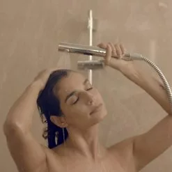The shower nozzle has a flow regulator that ensures you have the right water flow regardless of water pressure. This means that no matter how much you open the tap, the nozzle regulates the amount of water for you.