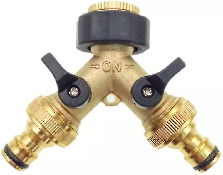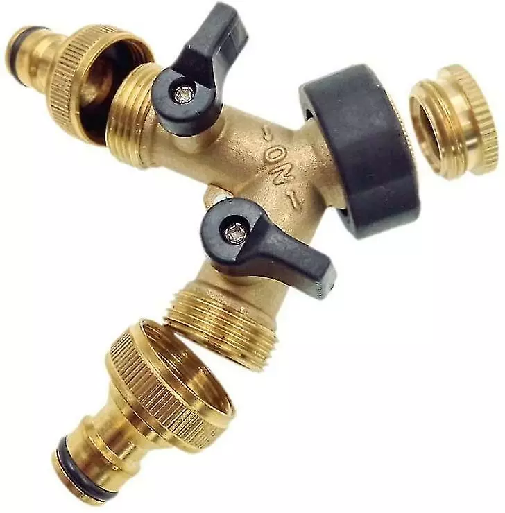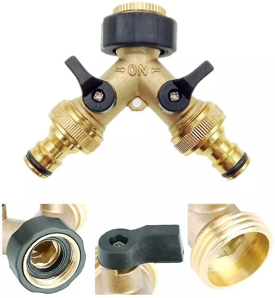 Package contains: 1x splitter tap With a standard 3/4 connector and two 1/2 quick connectors. It is made of heavy duty brass, very sturdy and durable, no rust.