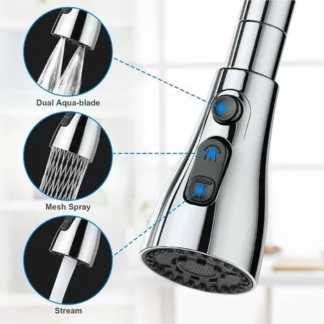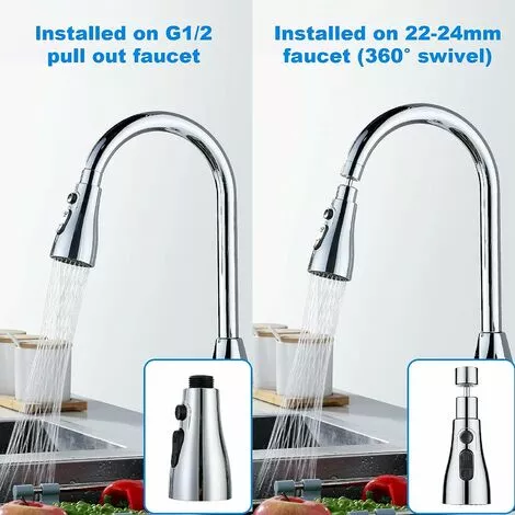 3 Connection Sizes – 360° Conversion Headless: Pull down spray head only fits G1/2 connector . Tap extension with 360° adapter: 22 mm female thread or 24 mm male thread for regular taps (adapter required). This sink faucet makes it easy to clean every nook and cranny of your sink.